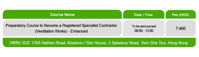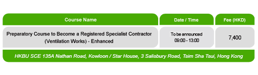 Course to Become a Registered Specialist Contractor (Ventilation Works) Commencing Date Venue (Hong Kong) Data Center