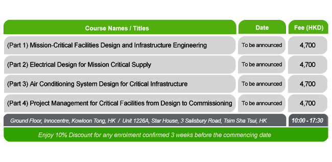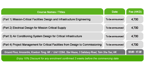 and Training Programs for Mission Critical Facilities and Design Commencing Date Venue (Hong Kong) Enrolment Fee Preparatory